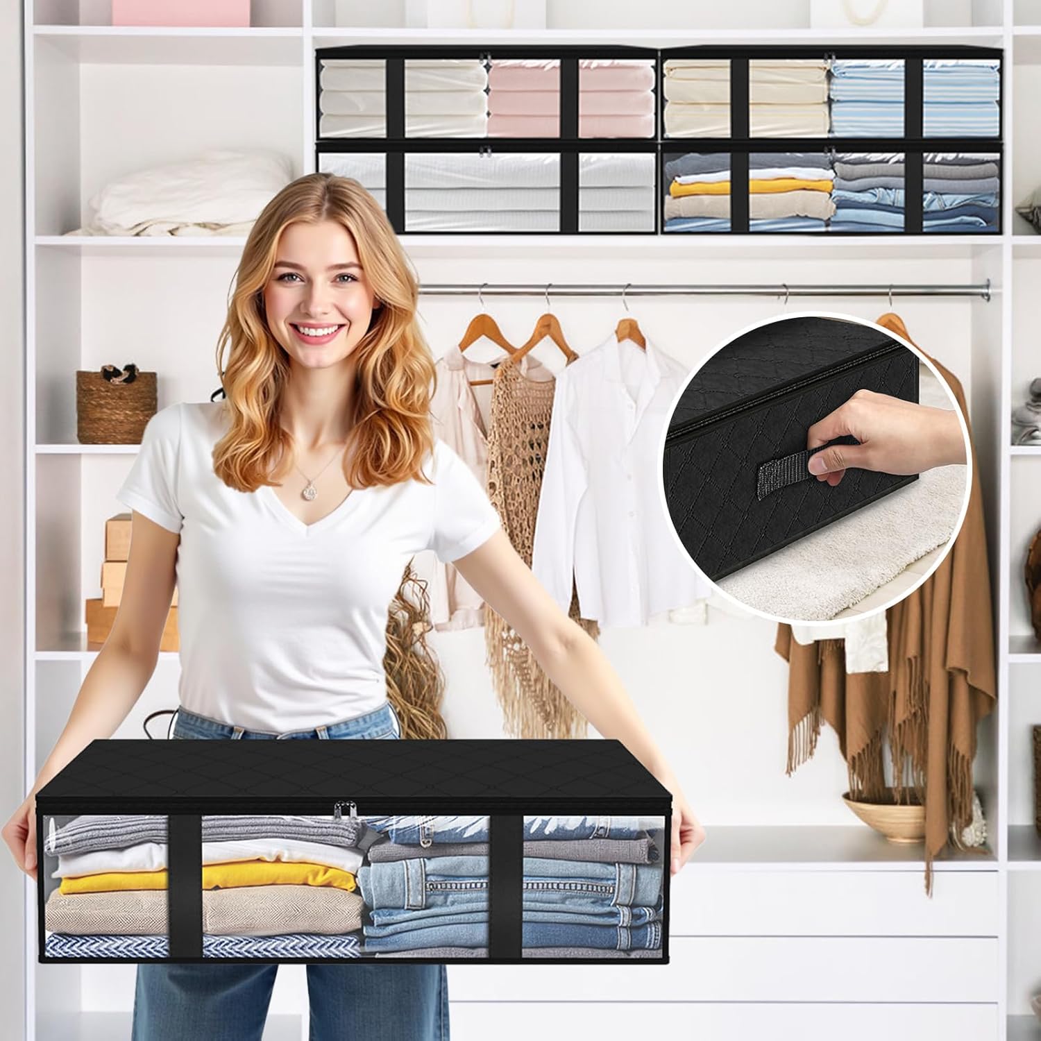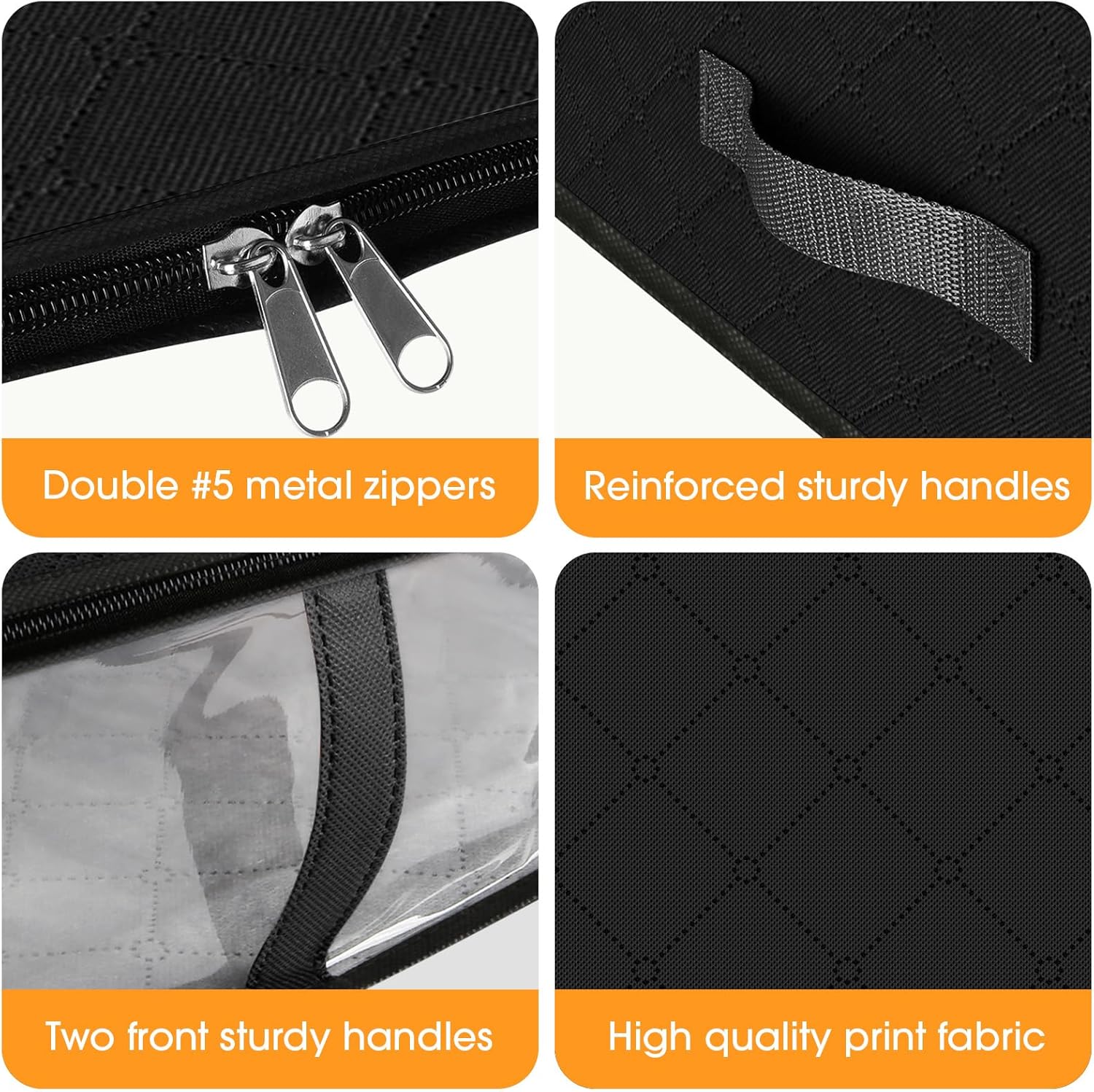 StorageRight Under Bed Storage Bins, 8-Pack 40L Foldable Fabric Storage Bags with Transparent Window, Breathable Organizer for Clothes/Blanket/Comforter/Quiltr, Black