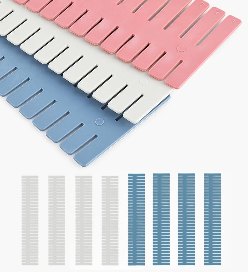 Adjustable Drawer Divider Kit – 8 Pack (White + Blue) – DIY Expandable Drawer Organizer for Dresser, Kitchen, Bathroom