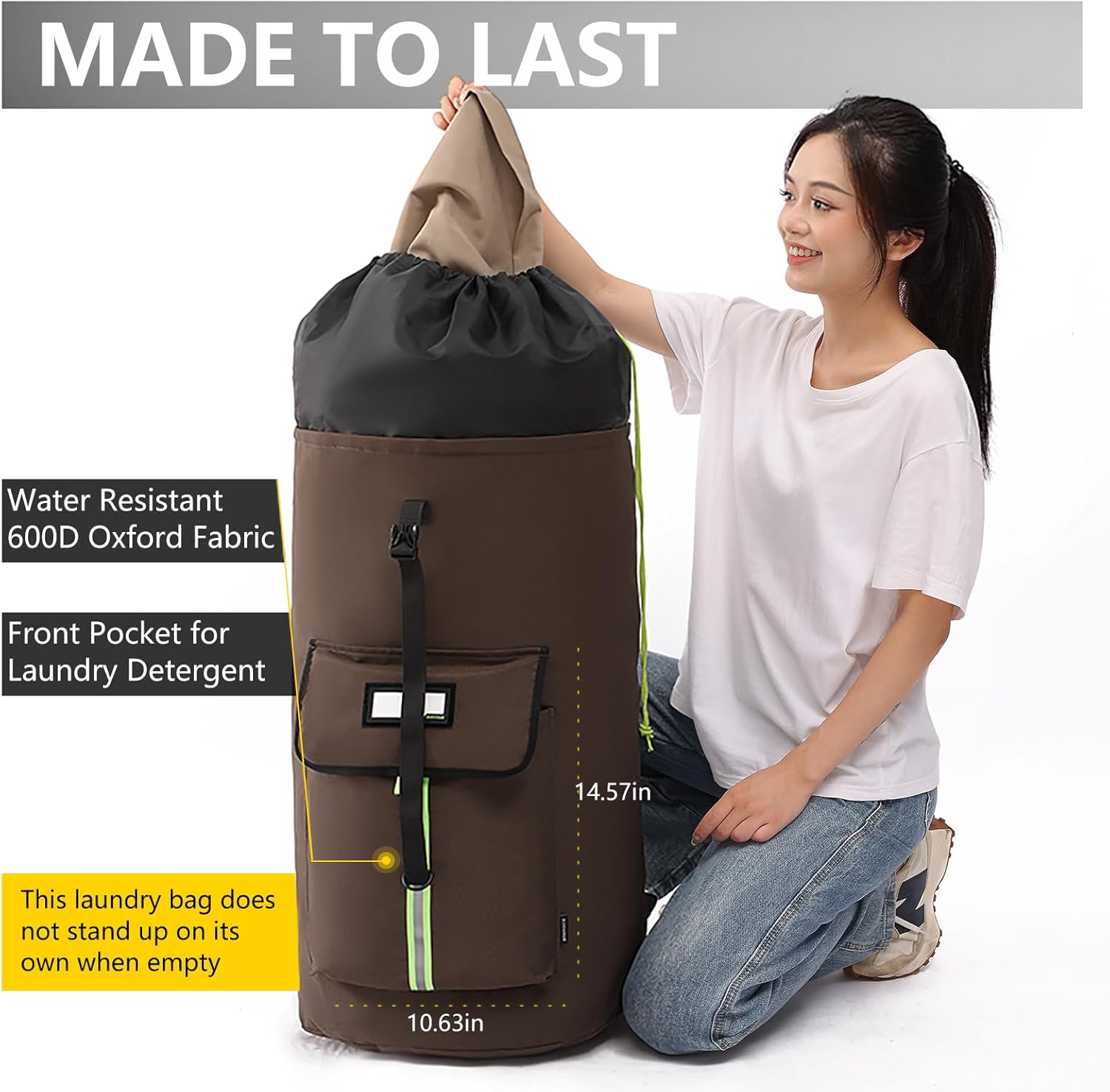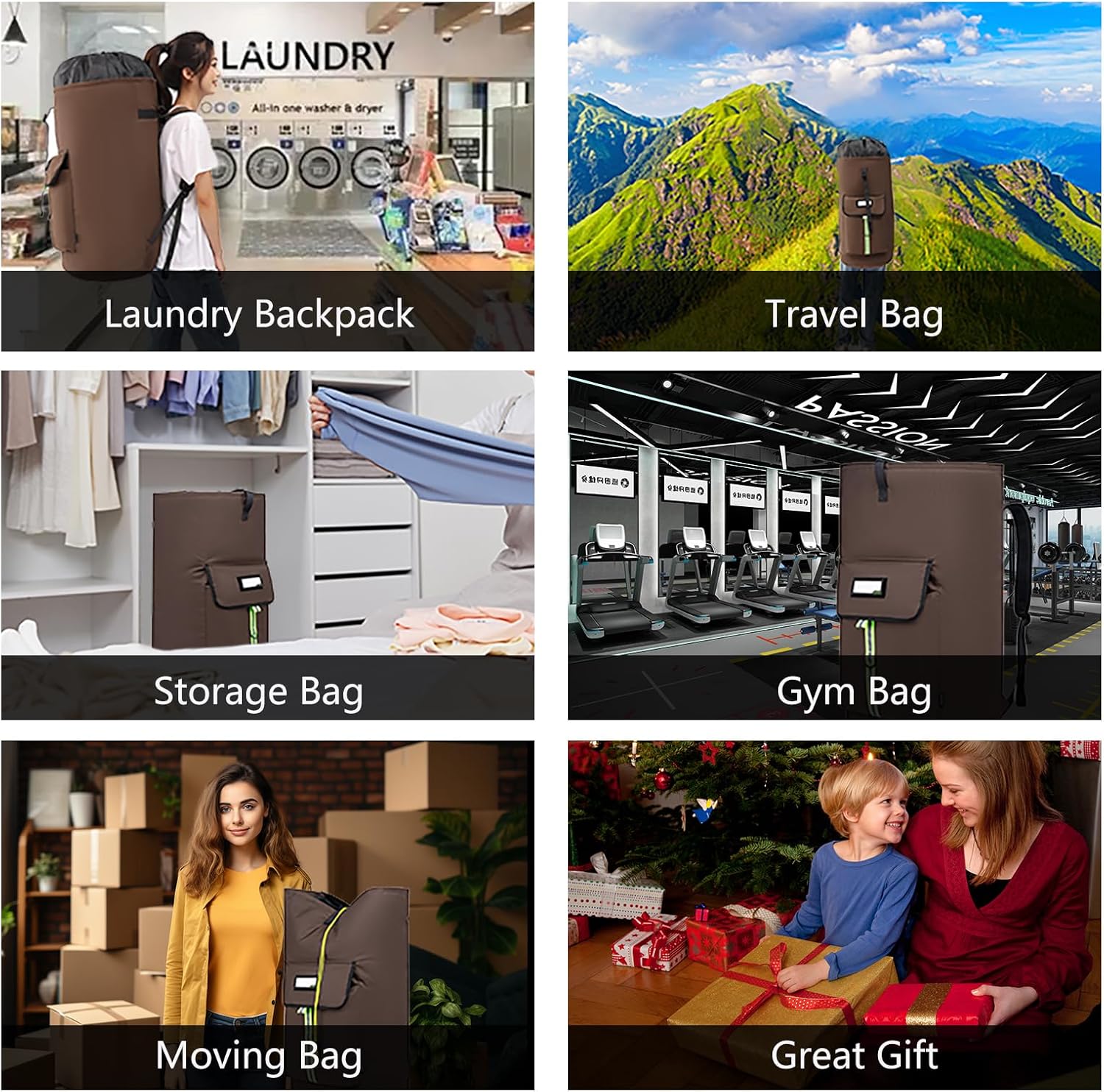 laundry bag backpack,extra-large heavy duty laundry bags,laundry backpack for college students,drawstring closure (Brown)
