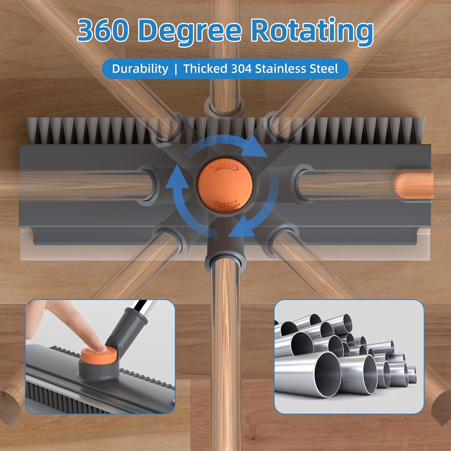 - 🔄 180° Stiff Bristle Brush + Full Rotation: Clean like a pro! The three-sided brush features stiff bristles and a 90° angled head that rotates 360°, giving you total access to baseboards, tile corners, and tight spaces. Perfect for deep cleaning floors and hard surfaces