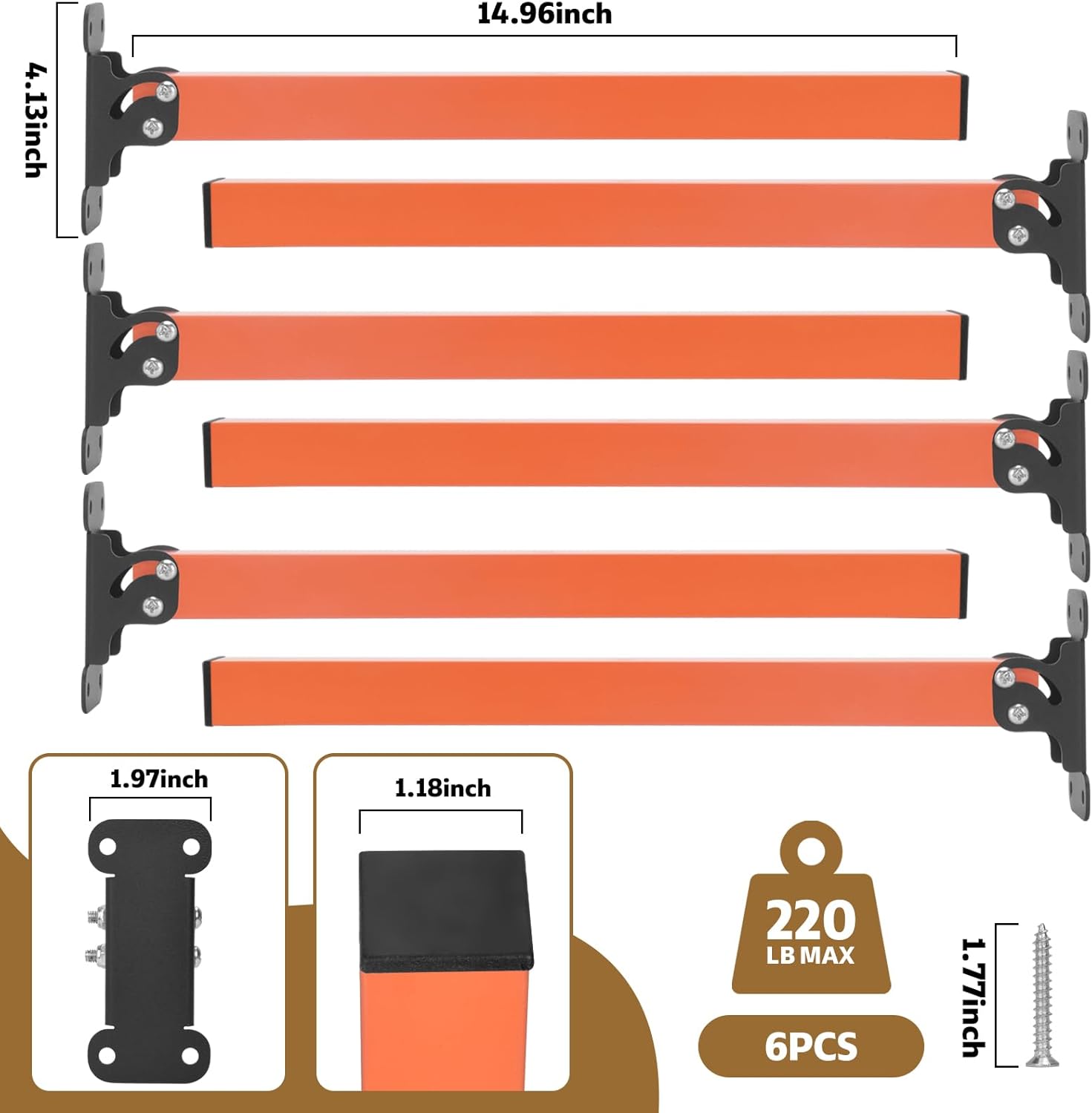 - 【Personalized and Versatile Storage Rack】: Newly designed adjustable angle 90 ° 75 ° Wall Mount Wood Organizer and Lumber Storage Metal Rack.90°Mount Wood Organizer are used to place long objects like lumber, pipes, gutters, or skis. 75 ° Wood Organizer and Lumber Storage Metal Rack Used in water pipes, steel pipes, ladders, and other products that are easy to roll. Capable of being securely locked at an appropriate angle