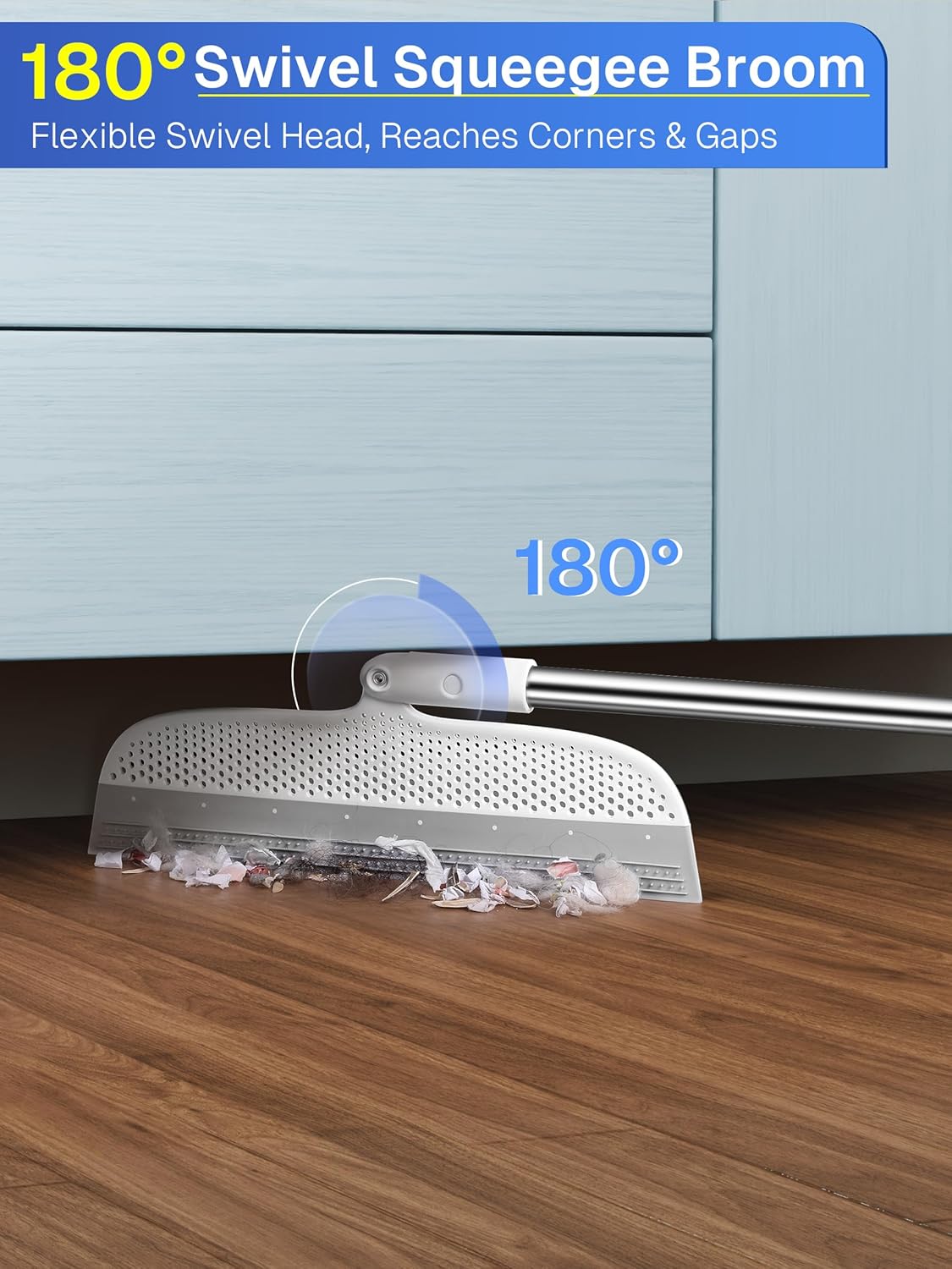 - 【Lightweight & Easy to Clean】Weighs only 0.68 lbs—lighter than bulky brooms or vacuums and easy to handle, even for seniors. Simply rinse the squeegee broom for floor blade under water for quick cleaning every time.