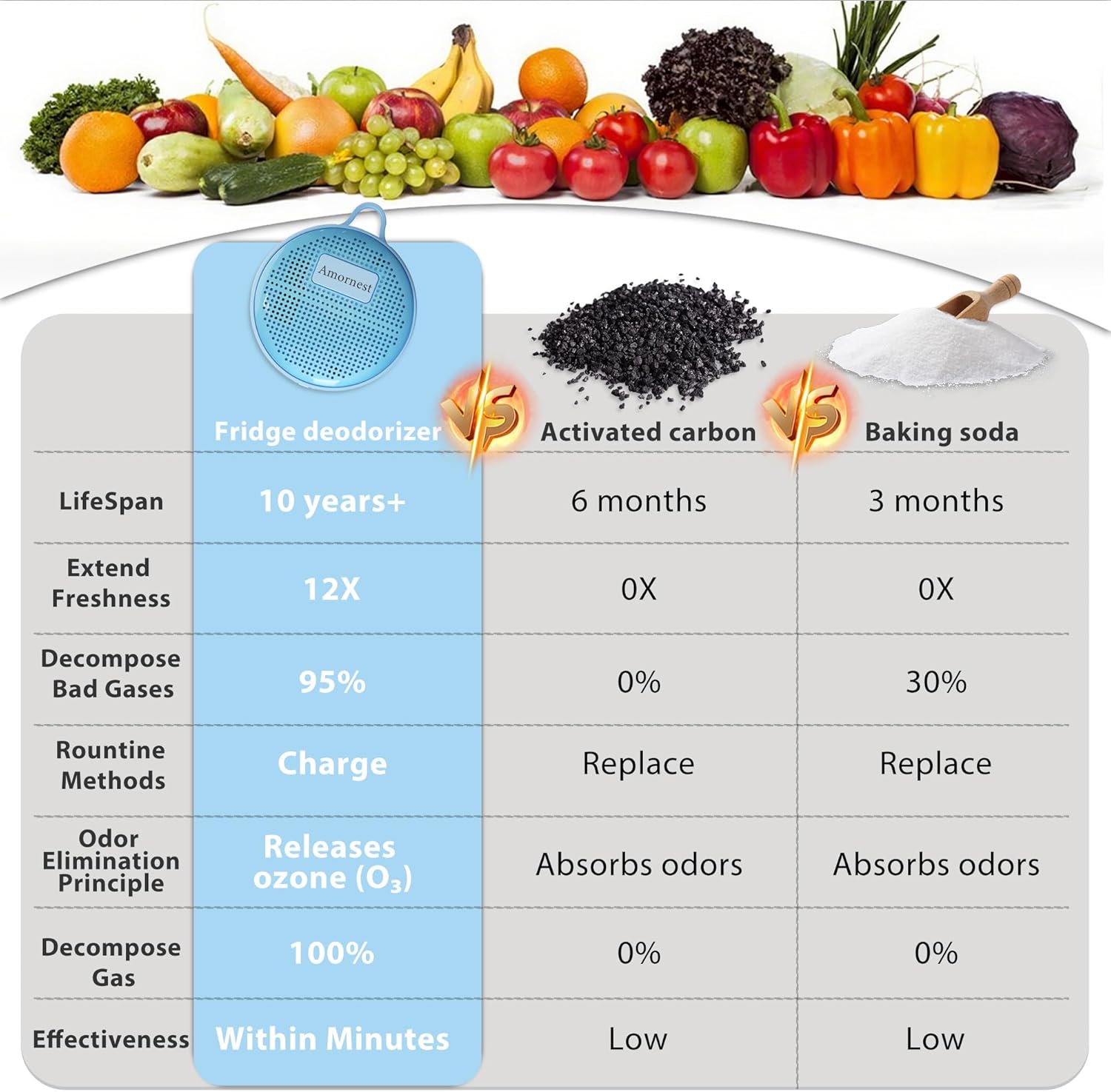 - ⚡【Durable and Strong Effect】Its non-absorbent catalytic design ensures zero performance decay, making this fridge smell eliminator a cost-effective, eco-friendly solution that reduces waste and hassle. Unlike traditional solutions (baking soda, charcoal), this fridge odor eliminator leaves no residue or harmful byproducts. Besides, There is no need to frequently to replace the adsorptive substances.