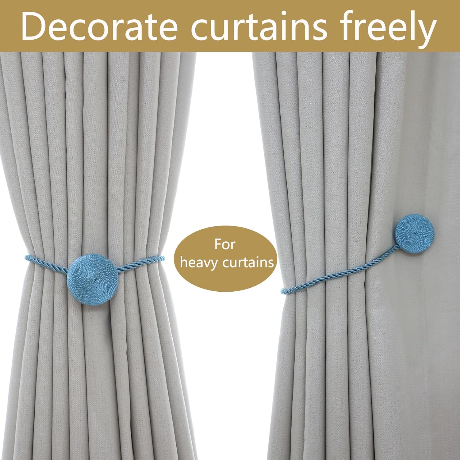 - ๐ฏ Versatile Styling Anywhere: Versatile for Any Room & Curtain: These magnetic curtain tiebacks perfect for thick blackout drapes or sheer curtains, used fully tied or half-tied. Perfect for living rooms, bedrooms, offices & bathrooms. European braided design blends with farmhouse, modern, or classic decor. Holds thickest curtains yet gentle on fabrics.