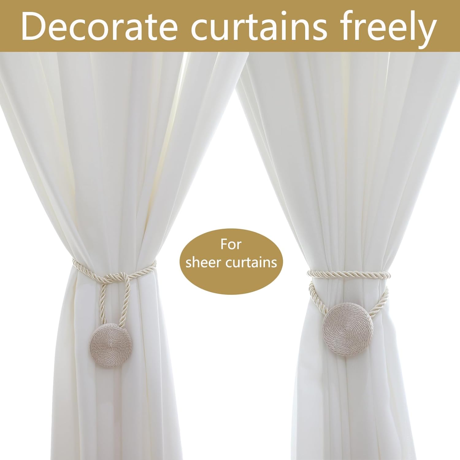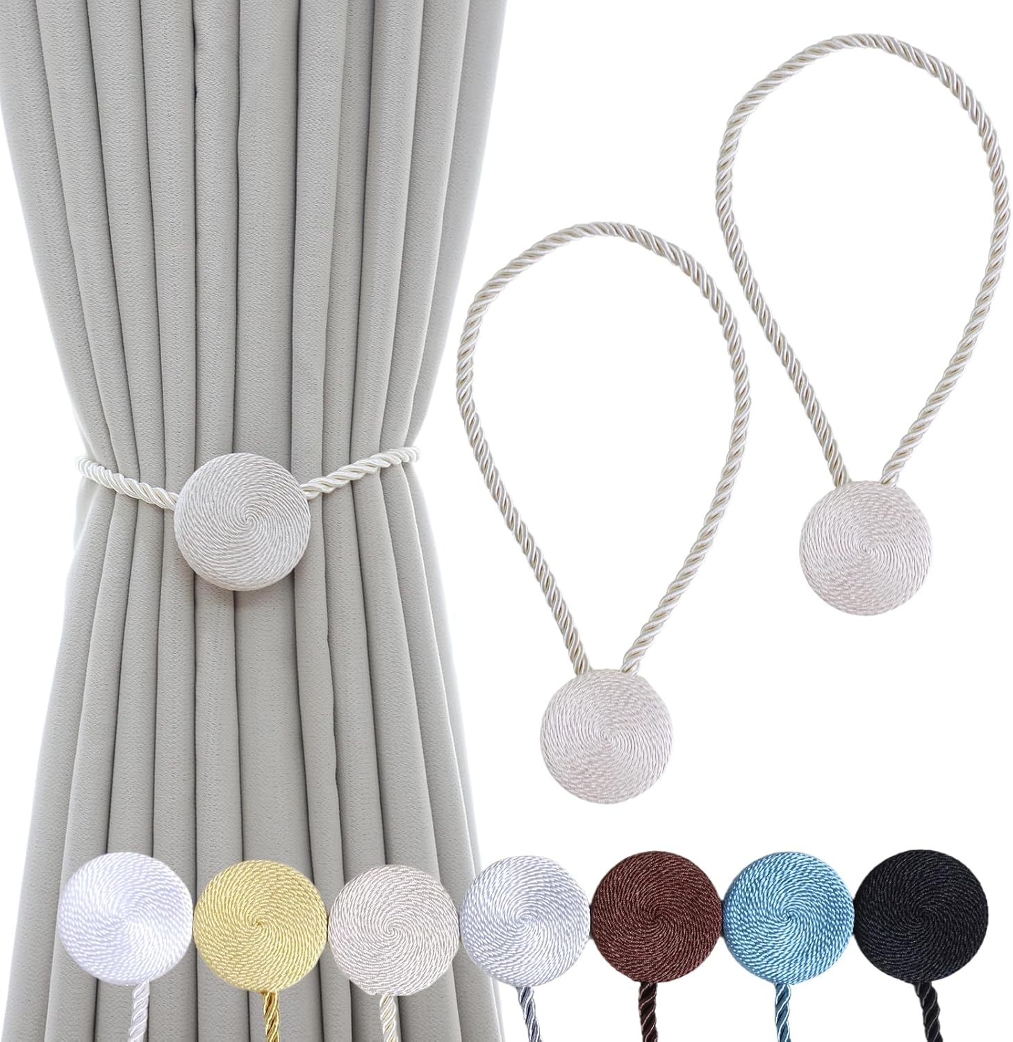 - ๐ฏ Versatile Styling Anywhere: Versatile for Any Room & Curtain: These magnetic curtain tiebacks perfect for thick blackout drapes or sheer curtains, used fully tied or half-tied. Perfect for living rooms, bedrooms, offices & bathrooms. European braided design blends with farmhouse, modern, or classic decor. Holds thickest curtains yet gentle on fabrics.