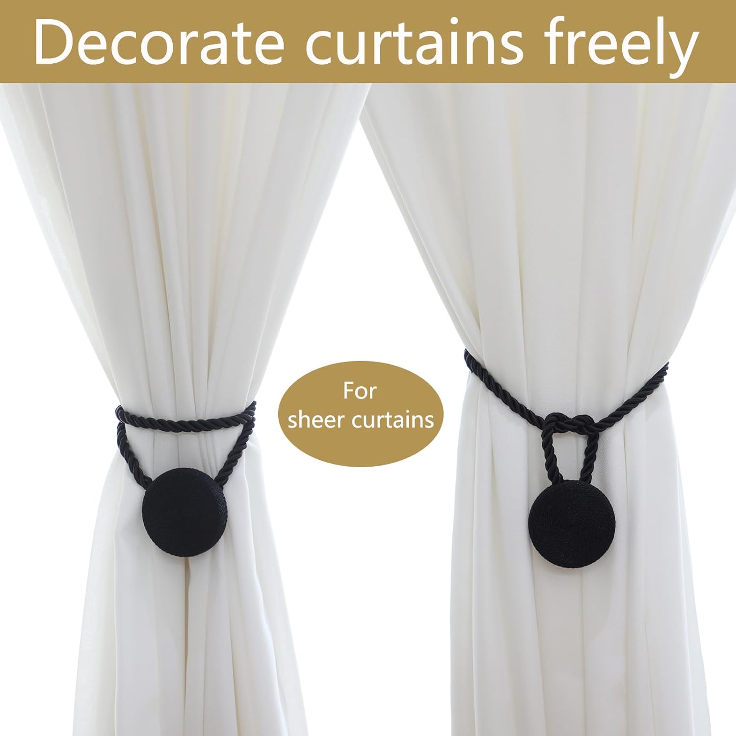 - ๐ฏ Versatile Styling Anywhere: Versatile for Any Room & Curtain: These magnetic curtain tiebacks perfect for thick blackout drapes or sheer curtains, used fully tied or half-tied. Perfect for living rooms, bedrooms, offices & bathrooms. European braided design blends with farmhouse, modern, or classic decor. Holds thickest curtains yet gentle on fabrics.