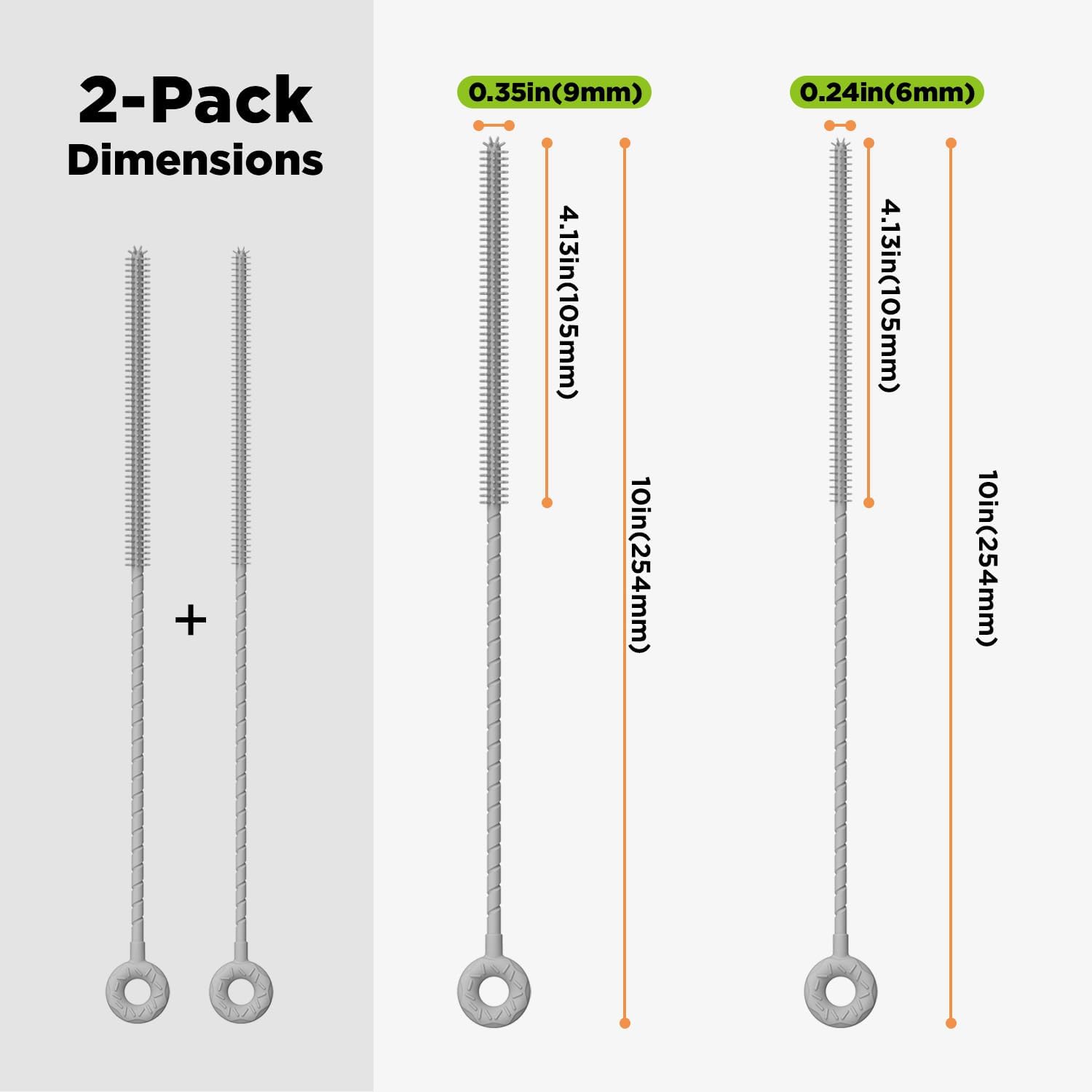 - Double Size & Extended Bristles: Two brush diameters (6mm & 9mm) with a total length of 10in. The silicone bristles extend up to 4.13in, reaching deep inside straws for a thorough clean.
