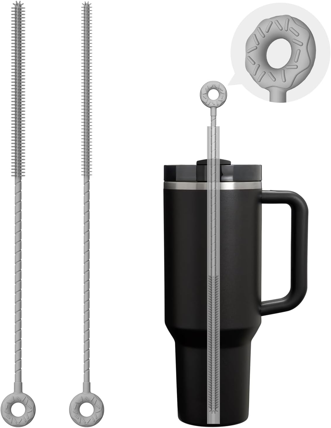 2 Pcs Silicone Straw Cleaner Brush, Extra Long Cleaning Brushes for Straws, 6mm&9mm, Gray