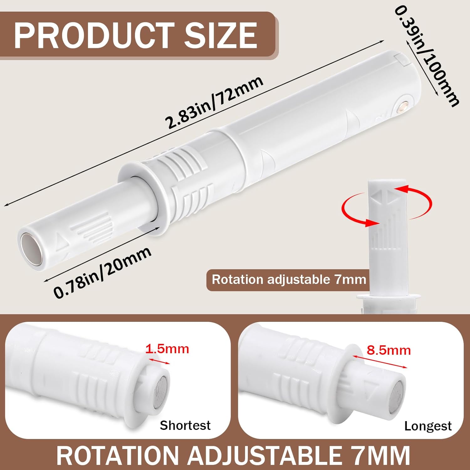 - Easy DIY Installation: each magnetic cabinet latch includes mounting screws; Attach the magnetic base to the cabinet frame and the strike plate to the door or drawer; By rotating, the distance of the rebounder's pop up stroke can be fine tuned to make the rebounder suitable for different door gap distances