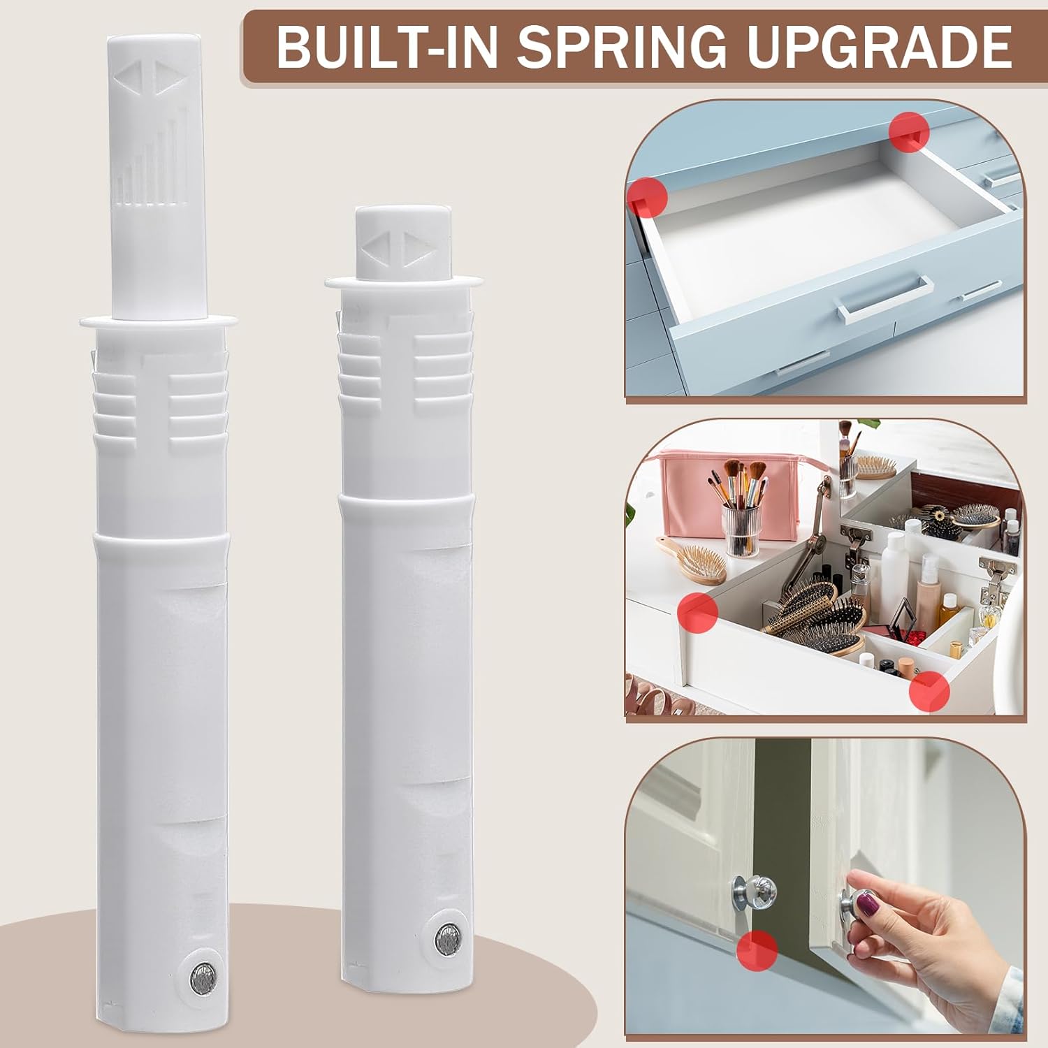- Home Cabinet Accessories: you will get 50 pack white magnetic push latches, ideal for outfitting cabinet, drawer, or sliding door in your home; Installed on the kitchens, bathrooms, closets, wine racks, and dressers; Say goodbye to handles, ensure cabinets door are tidy and unified