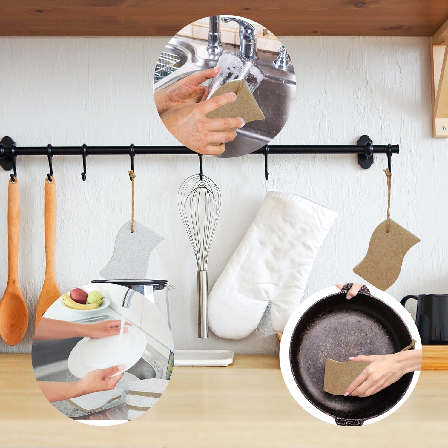 - Features a powerful sisal fiber side that effortlessly removes burnt-on food and tough stains, paired with a smooth wood pulp side that absorbs water and oil quickly
