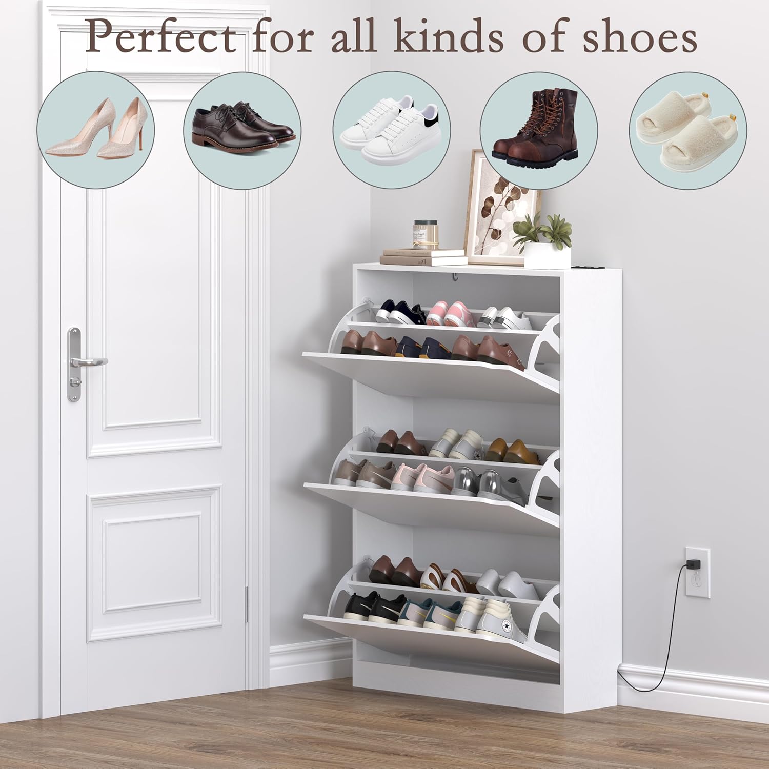 Shoe Cabinet with Odor Control and Back Panels, Deodorizing Slim 3-Flip Shoe Storage Cabinet for Entryway, Freestanding Hidden Shoe Rack Organizer for Entrance, Hallway, Bedroom