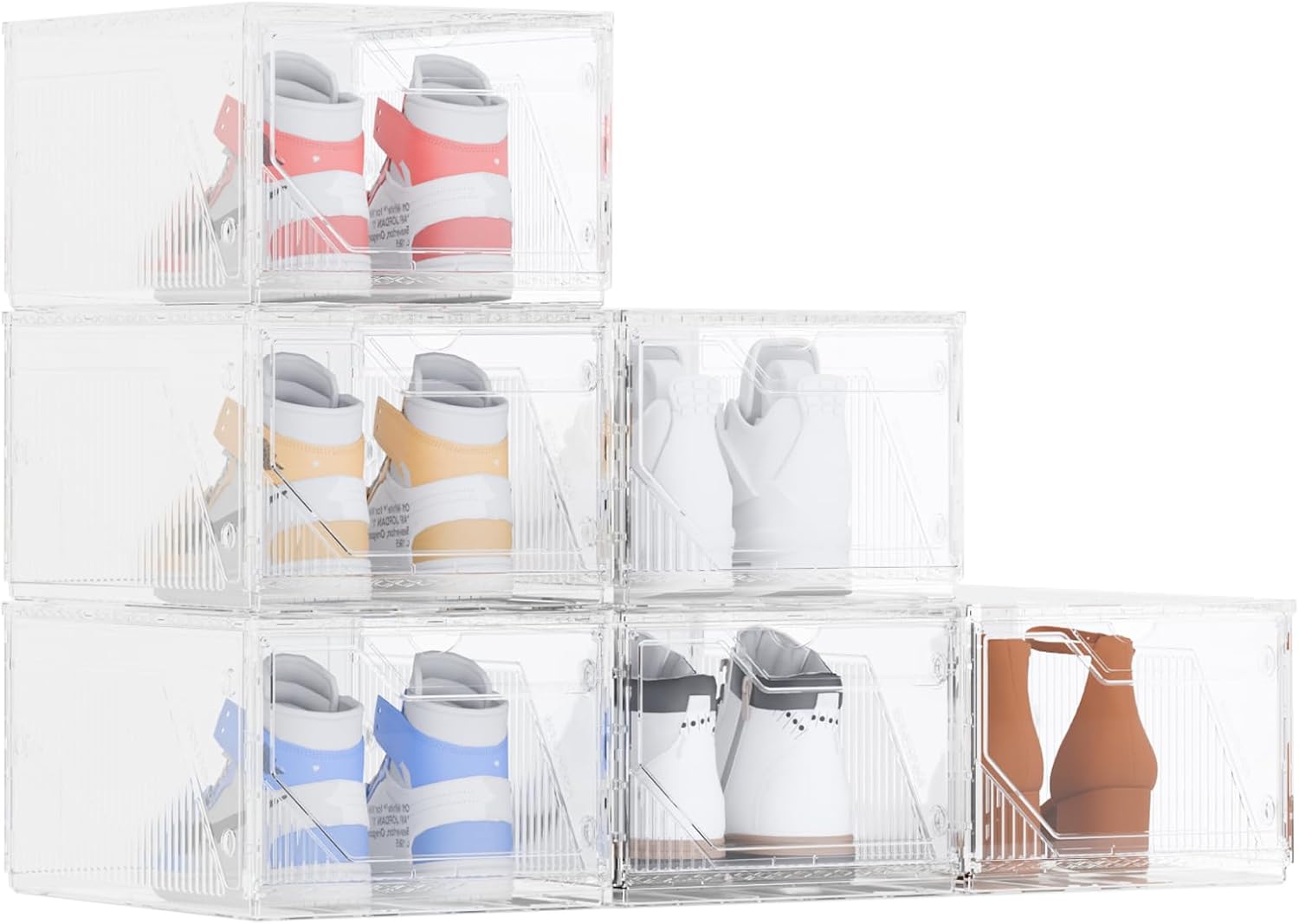 - Space-Saving & Stackable Design – These storage bins can be freely combined or separated to fit shelves, under sinks, bathroom counters, and more. Use individually for small spaces or stackable to create a shoe tower with buckles for customizable heights, perfect for closets, entryways, or under beds. Versatile for any girl, teen, adult, beauty, fashion and shoe lover, they adapt to many storage scenarios.