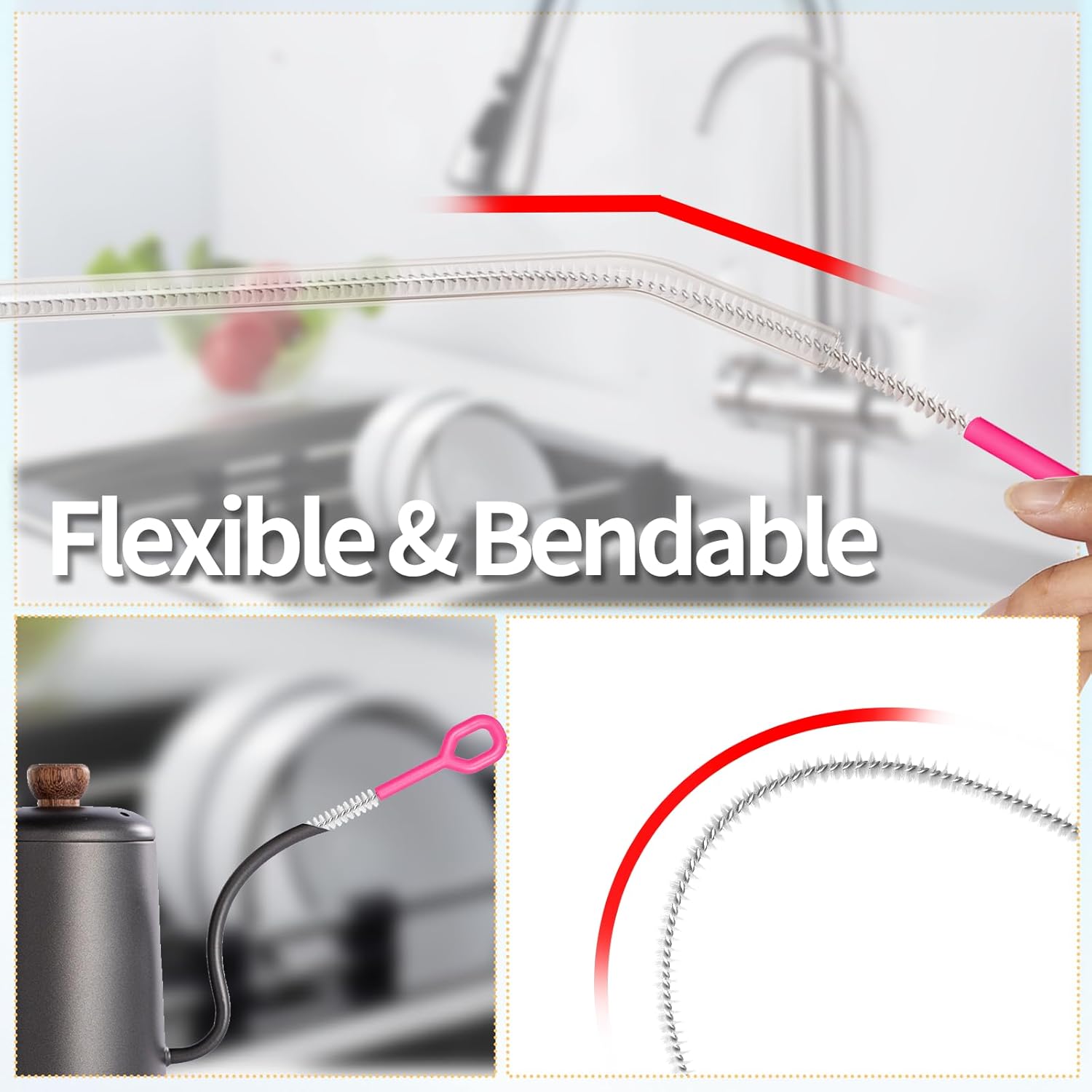 - Flexible Design for Easy Cleaning - The flexible yet sturdy design allows the brush to bend and glide effortlessly through curved or straight straws. No more struggling to clean tricky angles—this brush does the hard work for you!
