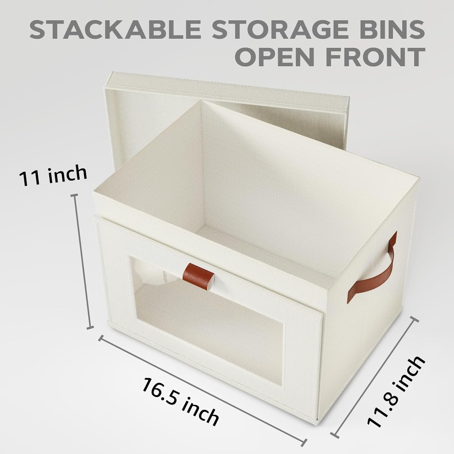 Large Storage Bins with Lids,Stackable&Collapsible Closet Storage Bins,Oxford Fabric Organizer Box with Clear Window,Large Decorative Storage Boxes for Shelves,Wardrobe,Living Room(Beige)
