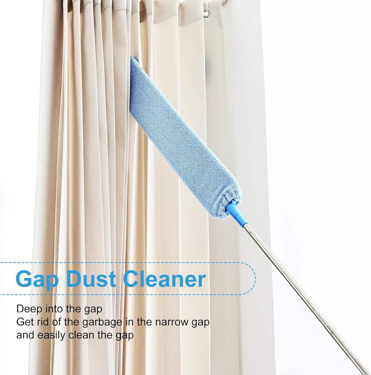 - Product specifications: This gap duster includes two machine-washable microfiber dusting cloths that can easily solve the problem of dusting floor gaps.
