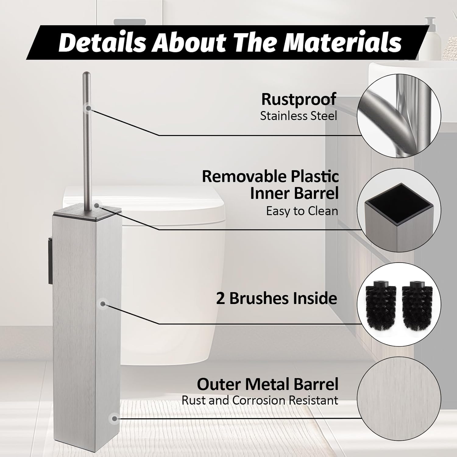 BGL Toilet Brush and Holder Set Brushed Nickel Wall Mounted for Bathroom Square Design