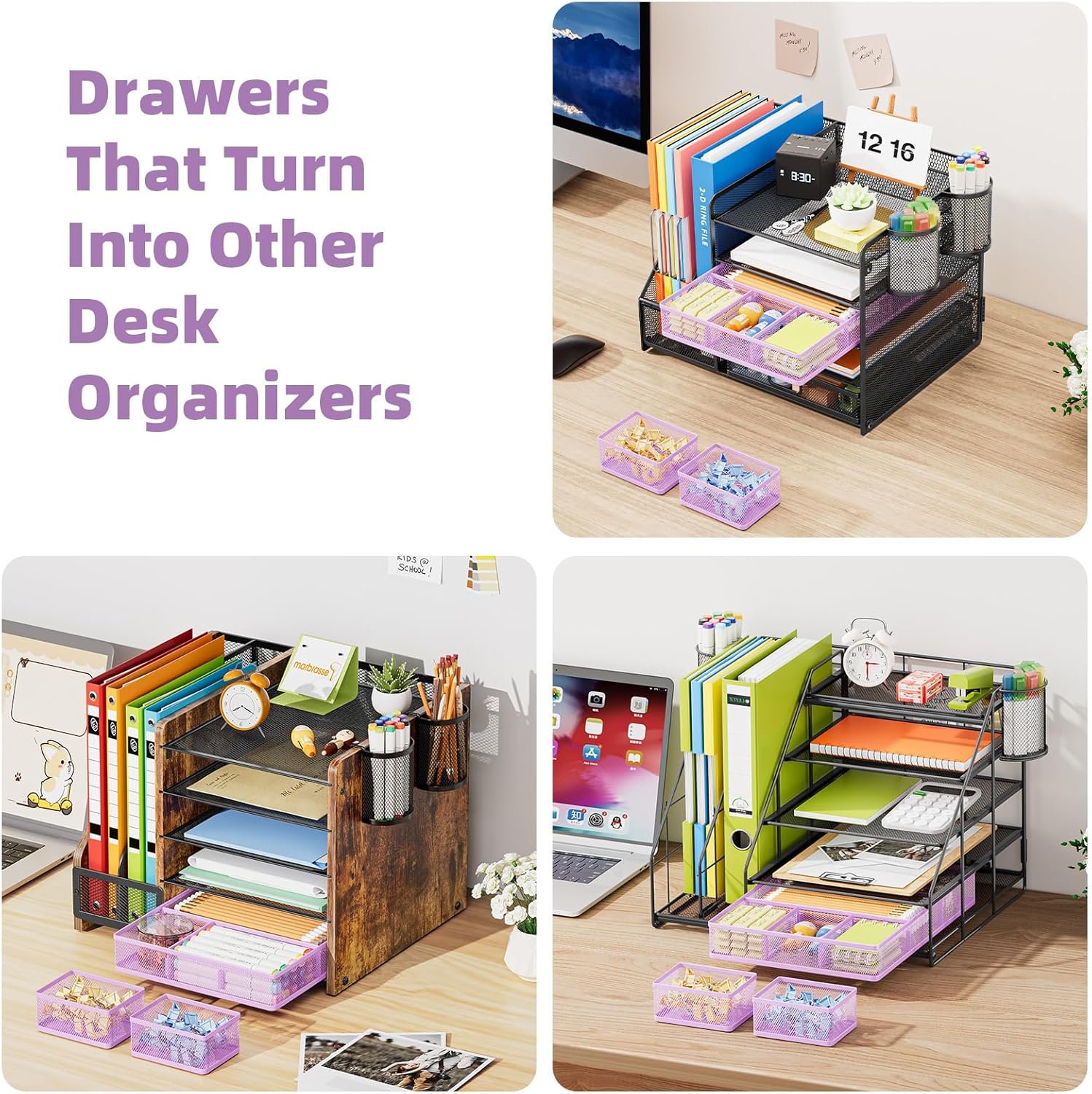 - 【Stury and Durable】Made of sturdy black wire mesh structure with powder coated surface, smooth and corrosion-resistant. Non-slip feet can keep the product stable.Big Drawer:12*8.3*2.2inches;2PC Small Drawers:3.5*3*1.9inches