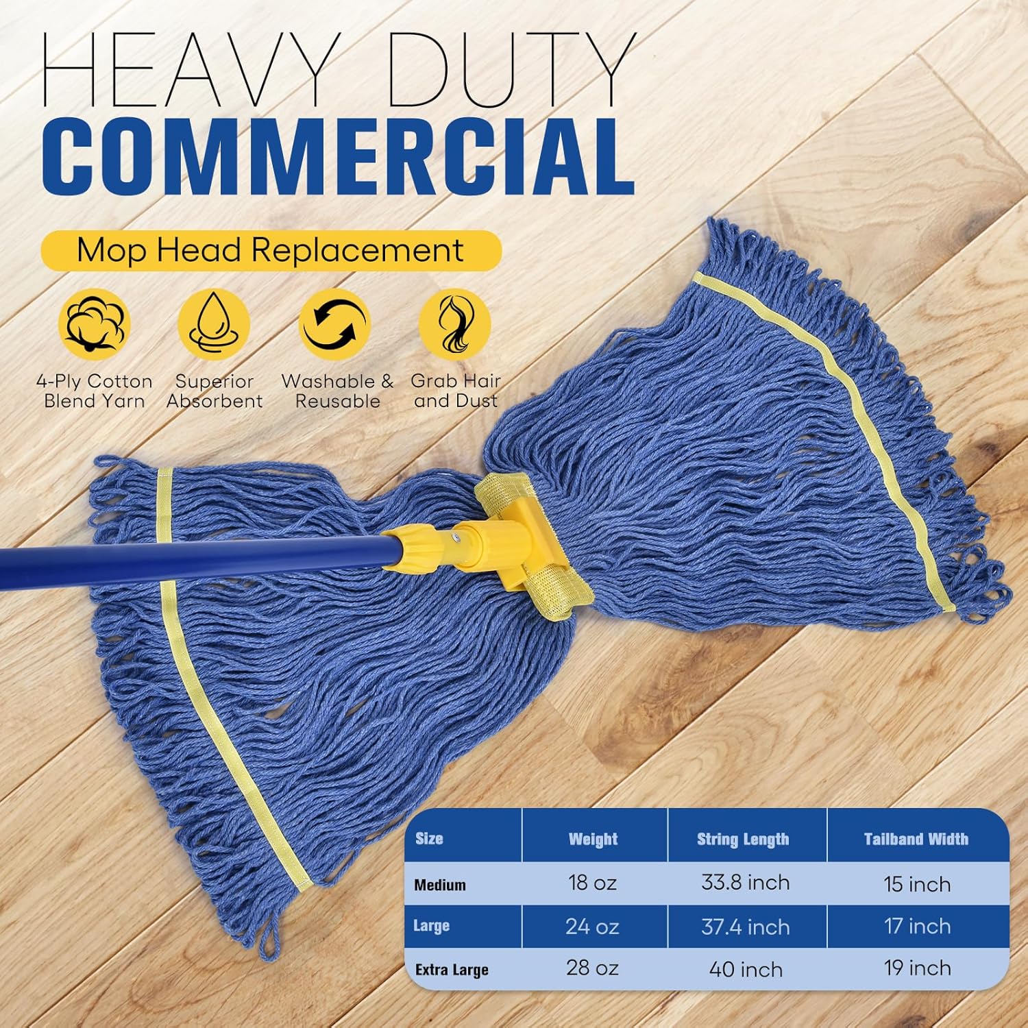 Matthew Cleaning Commercial Mop Head Replacement, 5 Inch Wide Headband, Looped End Cotton Blend String Wet Mops for Floor Cleaning, 24 oz Large, 6-Pack Blue