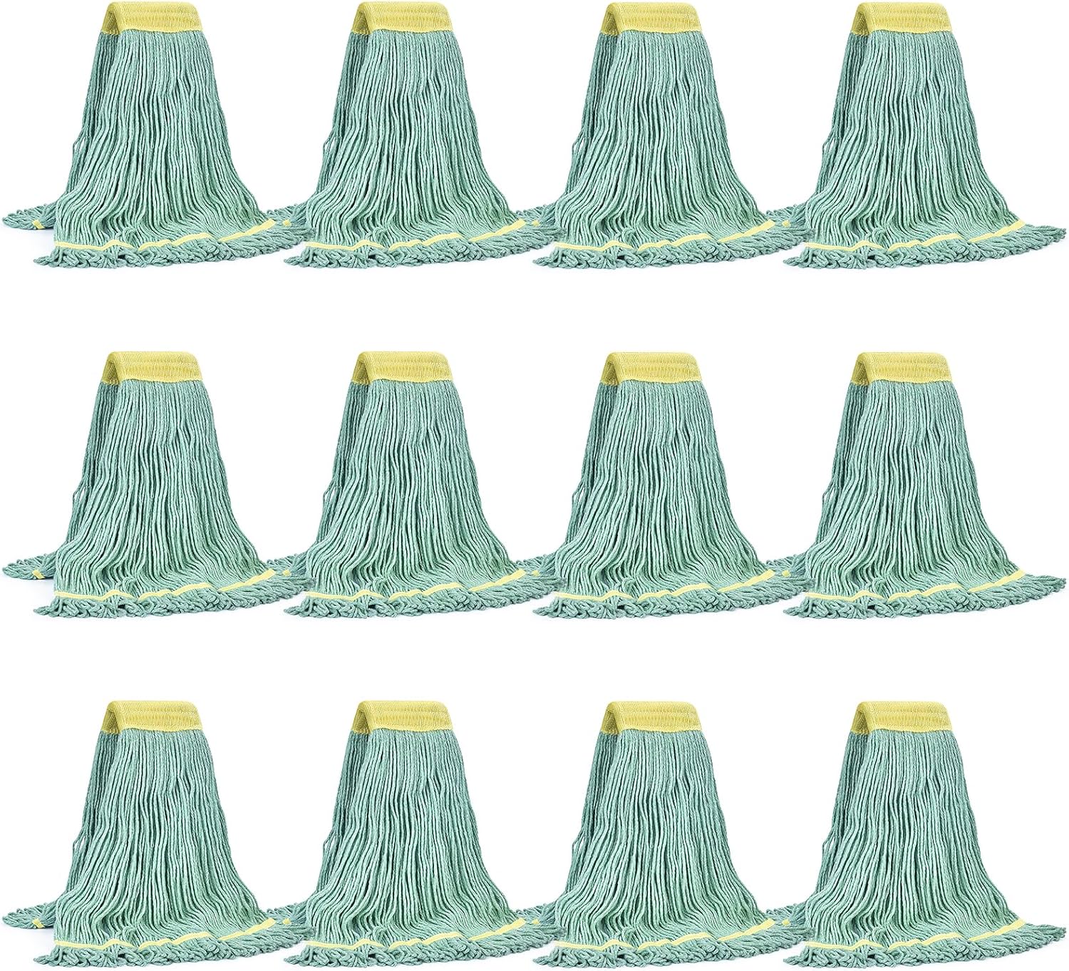 Matthew Cleaning Commercial Mop Head Replacement, 5 Inch Wide Headband, Looped End Cotton Blend String Wet Mops for Floor Cleaning, 24 oz Large, Case Pack 12 Pcs Green