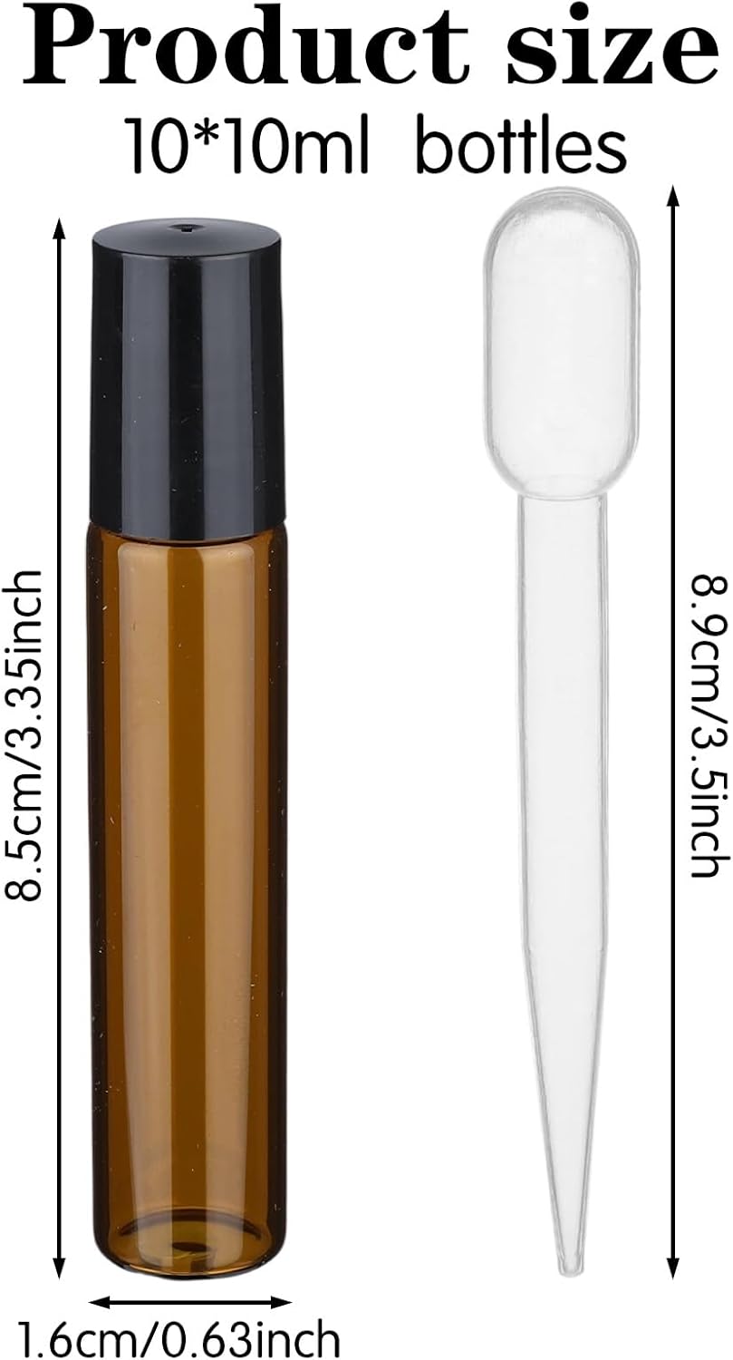 - 【Great DIY Gift】: This set includes 10 pcs 10ml empty refillable roller bottles and 2 transfer droppers. You can use our dark glass bottles for oil set to mix a variety of your favorite essential oil blends, perfumes, or other liquids!