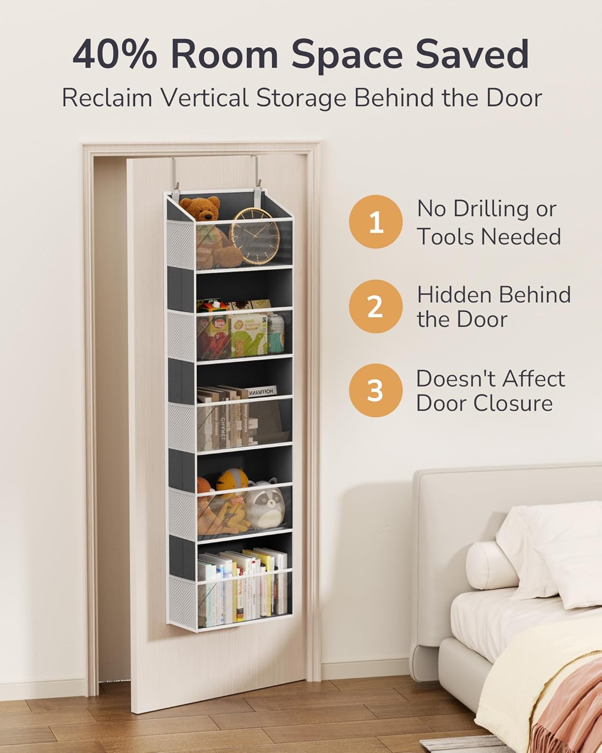 - 【Sturdy & Shape-Holding Storage】 Made of durable Oxford fabric, this closet door organizer resists tearing better than non-woven types. Reinforced with PP board bottoms and fiberglass side strips, it stays upright without sagging—ideal for structured, long-lasting storage