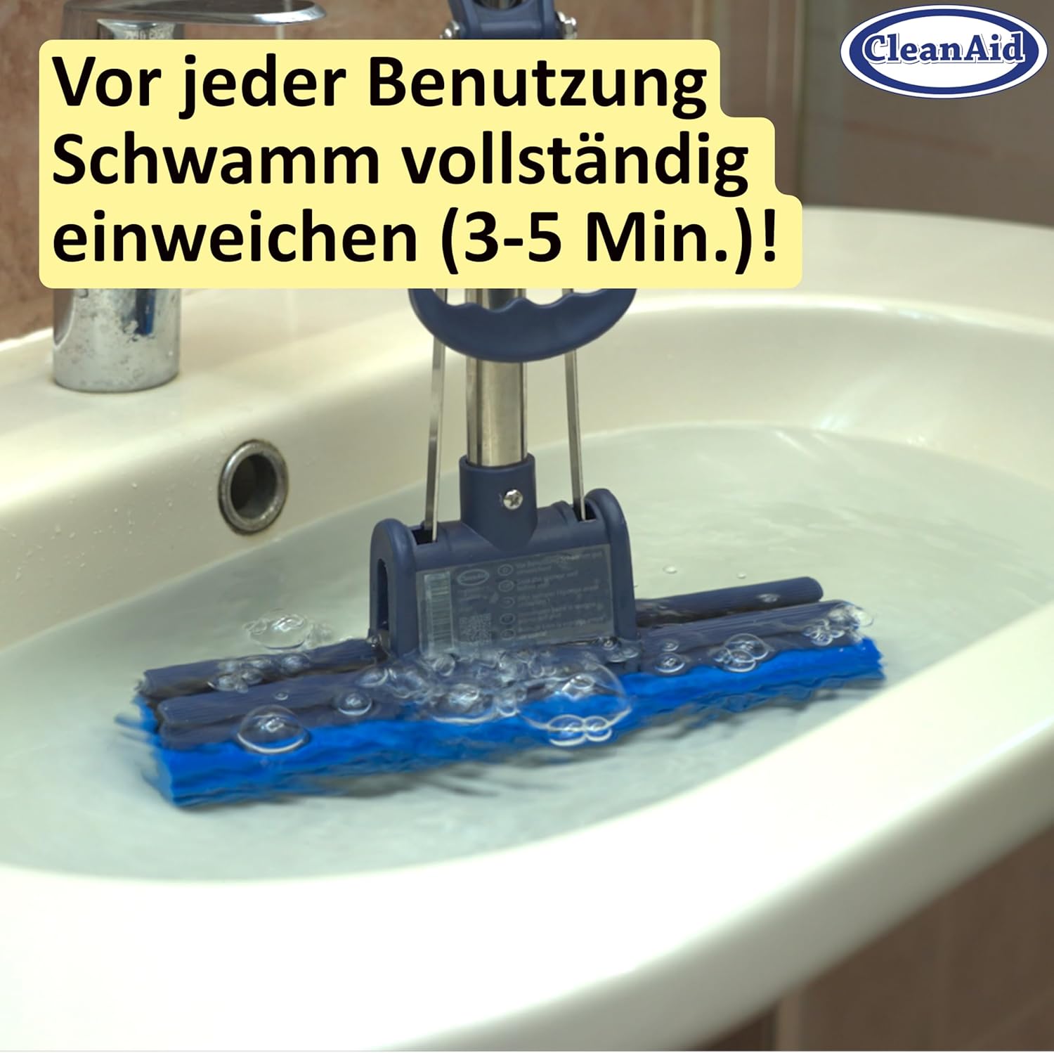 - ✅ APPLICATION TIP - Soak the cleaning sponge in warm water for about 2 to 5 minutes until it becomes soft. After that, the floor mop is ready for immediate use. No bucket is required. We recommend always wringing out and rinsing the sponge under fresh water. This way, you won't spread dirty mop water on the floor. Note: Do not clean the sponge with chlorine.